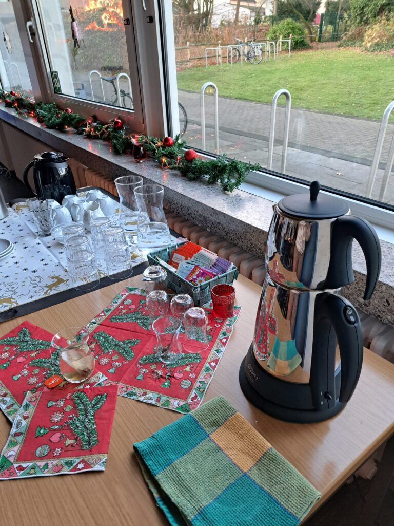 Unser Eltern- und Adventscafé war ein wunderschöner Treffpunkt für Familien, Kinder, Lehrkräfte und Schulsozialarbeiter: innen. Bei warmen Getränken und einem liebevoll gestalteten internationalem Buffet entstand eine gemütliche Atmosphäre, in der viele gute Gespräche geführt wurden.